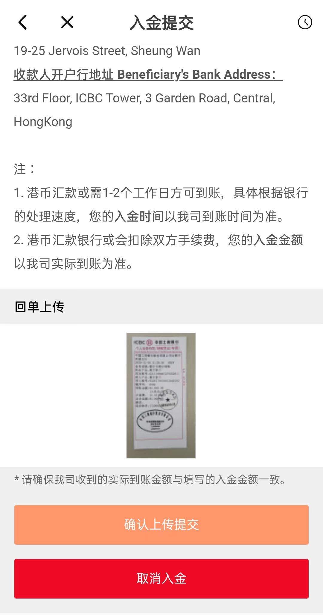 5. 提交后,工作人员会进行审核,审核完成后资金即转入您的证券账户,届时您可收到入金成功的提示邮件。