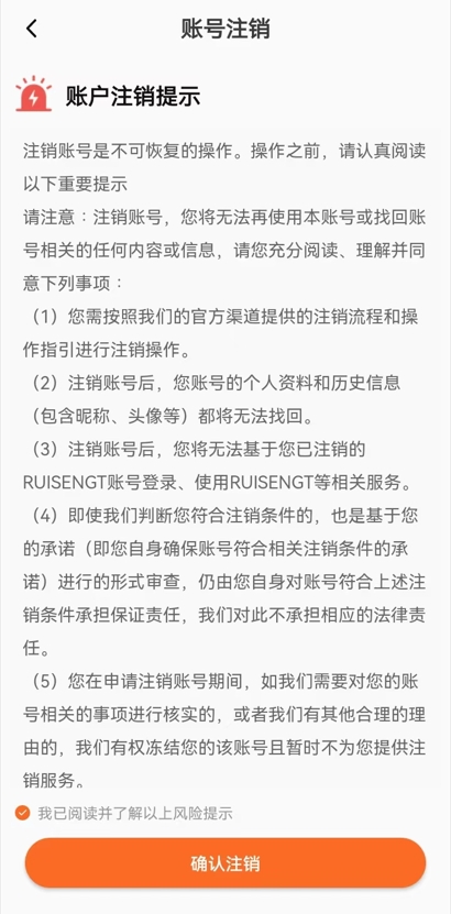 第三步:阅读相关风险提示,确认注销账户。