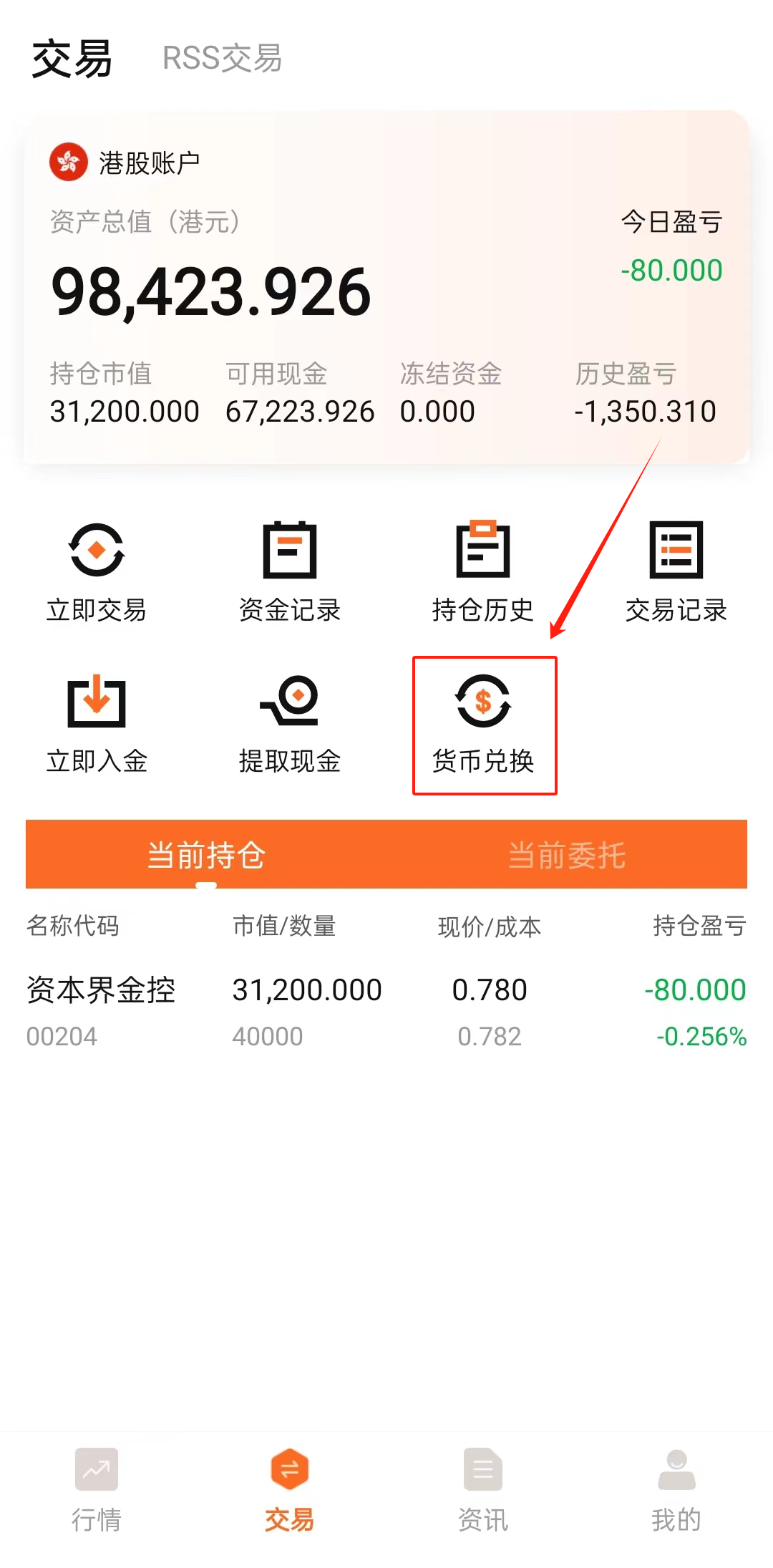第一步:点击APP内底部导航“交易”页面内的“货币兑换”