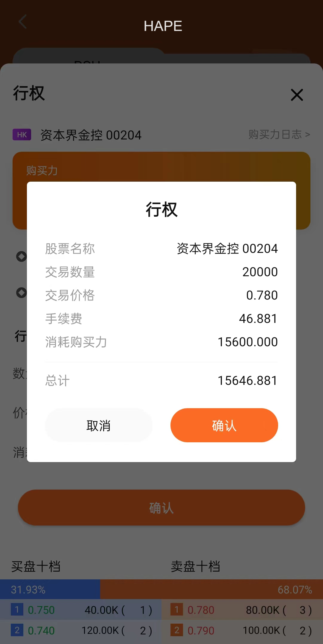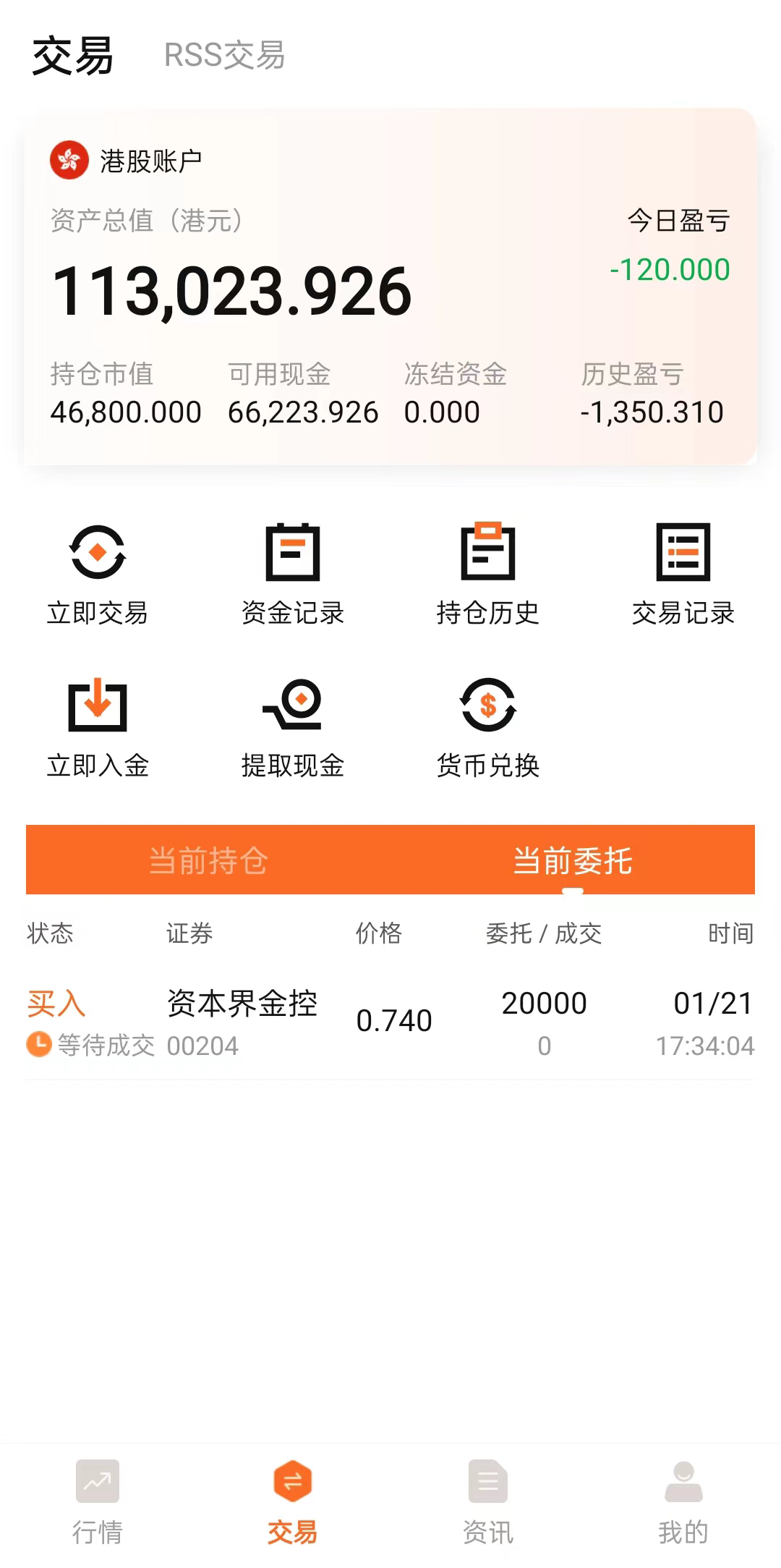 第六步:使用购买力行权股票的委托订单同样可在“交易”页面“当前委托”内查看。