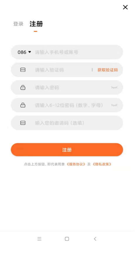 2. 使用手机号码注册,设置您的登录密码、交易密码。