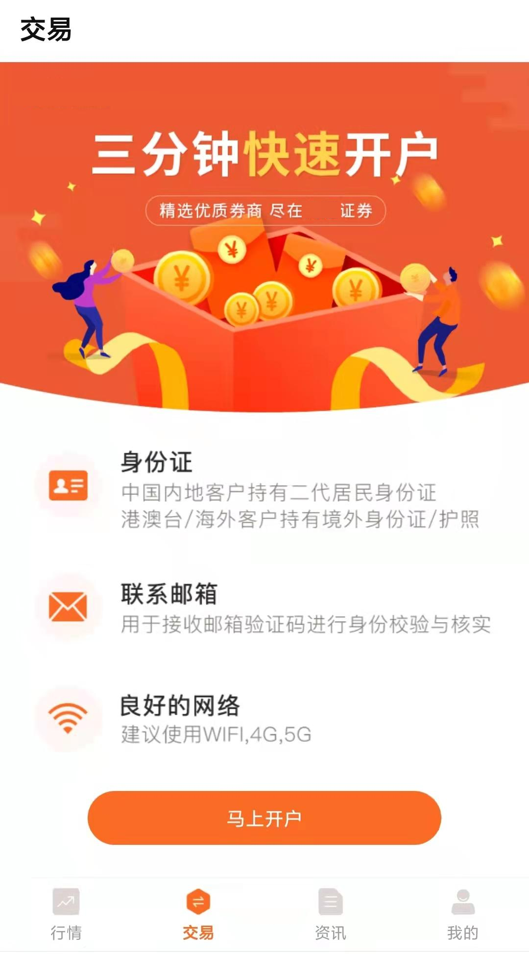 1. 在APP交易页面点击“马上开户”