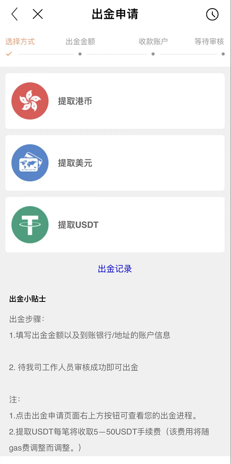 2.以USDT方式出金,每笔收取手续费5—50USDT(该费用将随gas费调整而调整)。